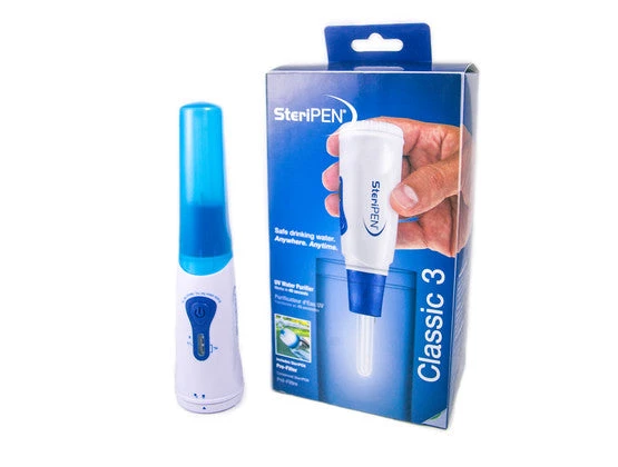 The SteriPEN Classic 3 with 40-micron pre-filter is the latest, most versatile model in our award winning Classic line. Winner of Time Magazine’s Best Invention of 2001, it offers enhanced ergonomics and battery life as well as improved water resistance. An 8,000 treatment lamp delivers a lifetime of purification. Use four AA alkaline batteries to purify 50 liters of water or four lithium batteries to purify 150 liters. Includes a neoprene storage pouch. Batteries not included.